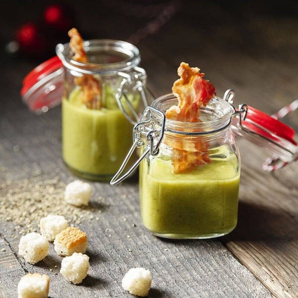 Dit kleine vierkante weckpotje met klemdeksel heeft een mooie retro look.