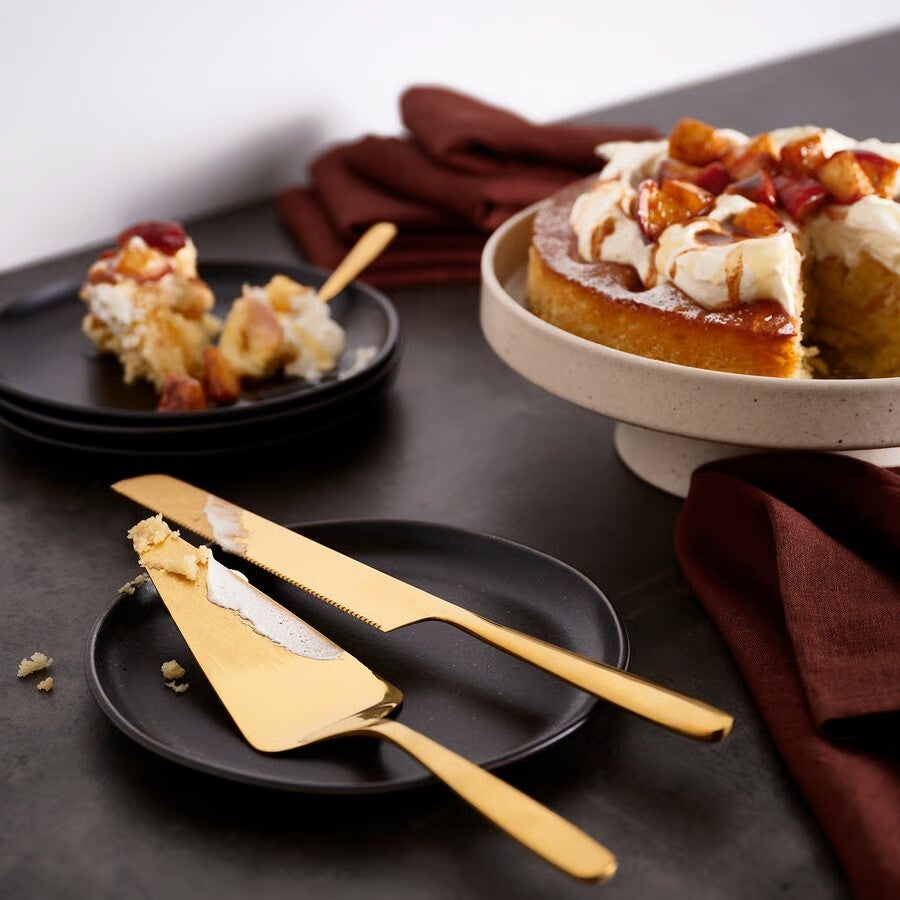 Speciale gelegenheden krijgen een gouden randje met dit elegante en stijlvolle taartbestek.