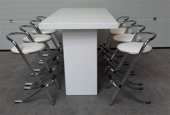 Dankzij het hoekige design en de witte kleur creëert u binnen een handomdraai een eigentijdse sfeer tijdens uw evenement met deze tafel.