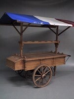 Dankzij het traditionele, houten design en de driekleurige luifel krijgt de kar een karakteristiek uiterlijk dat zal zorgen voor een gezellige sfeer tijdens uw evenement.