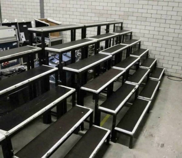 Kijk hieronder hoeveel trede u nodig heeft voor uw podium: